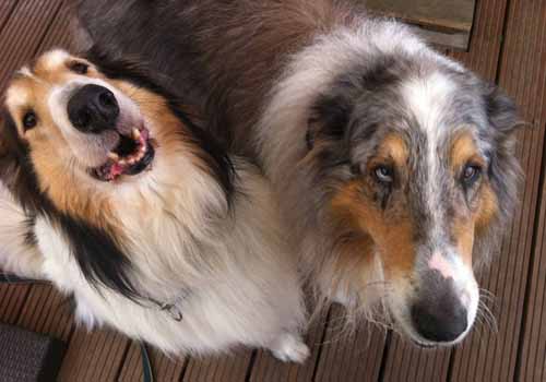 In den nächsten Tagen zeigte er, was in ihm steckte und trotz „am Mann“ zerbissener T-Shirts wurde es unser „Timmy“. Bei Dirk Lenßen arbeitete ich in der Gruppe mit ihm, zu Hause mit den anderen Collies, wir gingen durch Menschenansammlungen, fuhren in vollen Fahrstühlen …